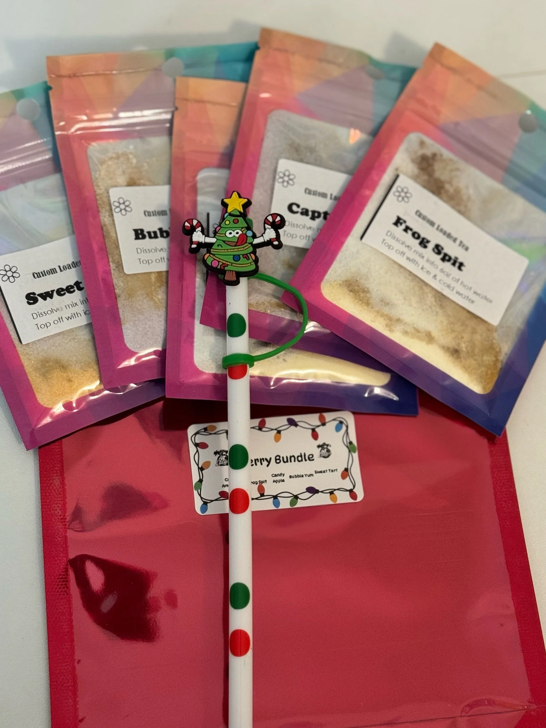 Christmas Holiday Bundle - 5 Regular Loaded Tea Mix Packs (Top 5) + Reusable Straw & Straw Topper